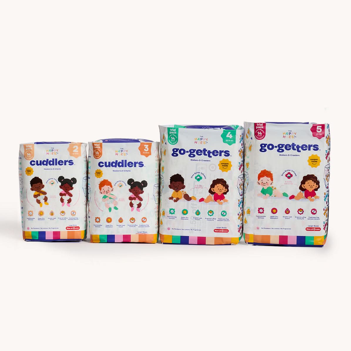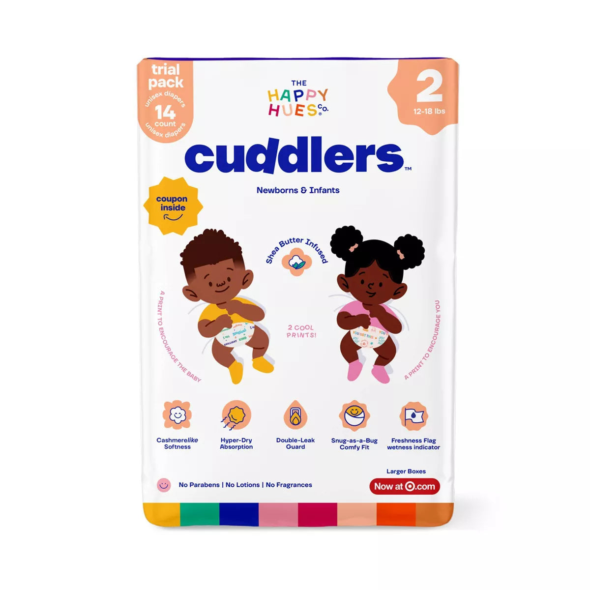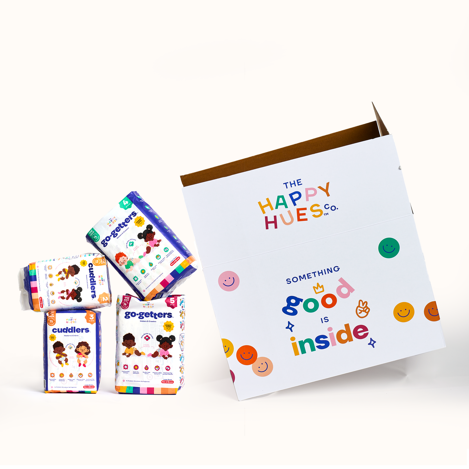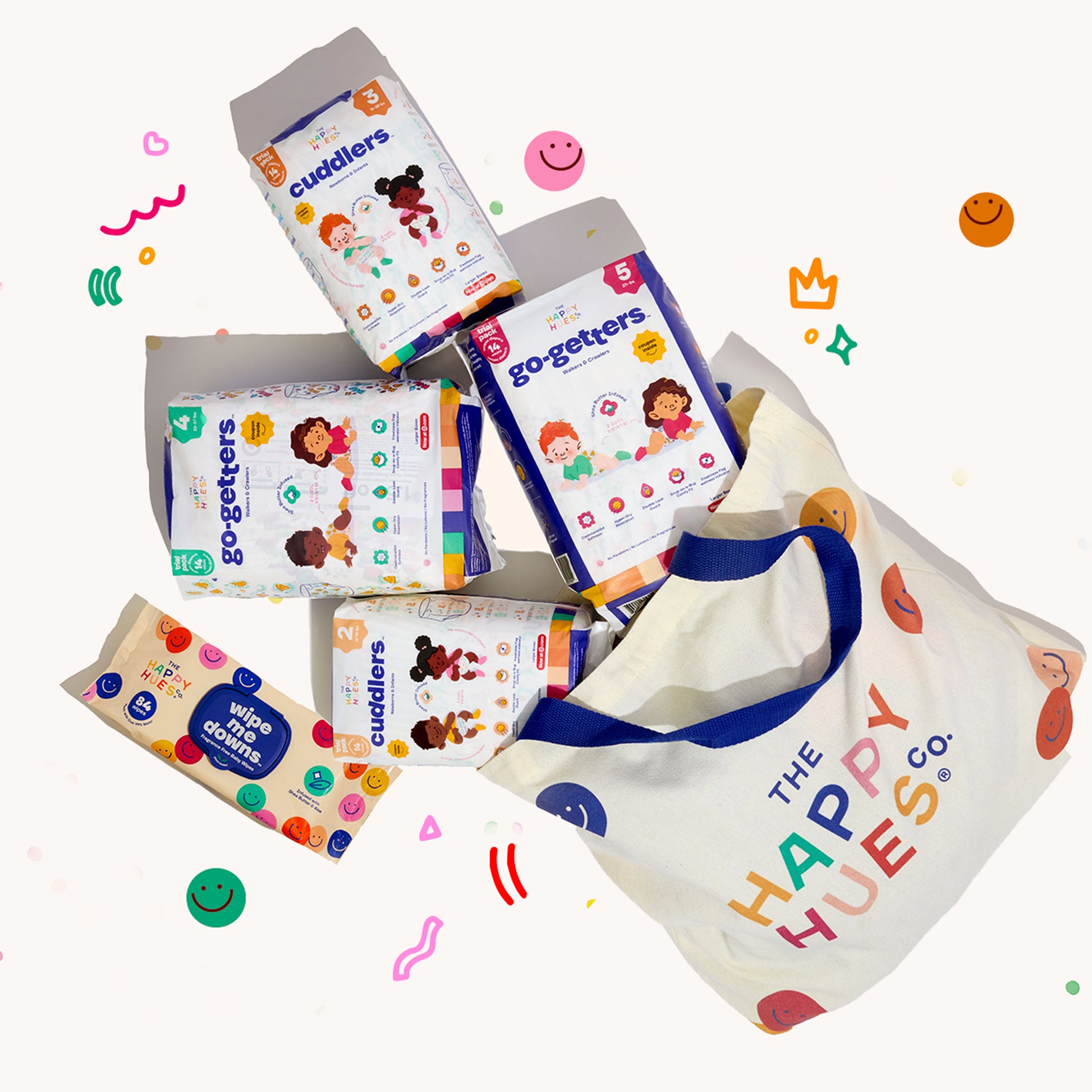 At Happy Hues, we believe that every diaper should be as comforting and joyful as the little one wearing it. That’s why we’ve carefully selected every ingredient and designed each feature to not only protect but also care for your baby’s delicate skin. Our hypoallergenic Cuddlers diapers are crafted with gentle and effective materials, free from parabens, PFAS, phthalates, BPA, fragrances, and lotions, so you can feel confident that your baby is getting high-quality care —nothing more and nothing less.